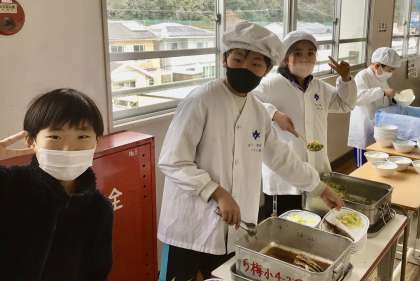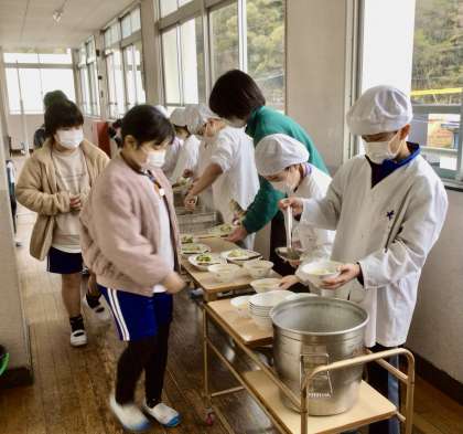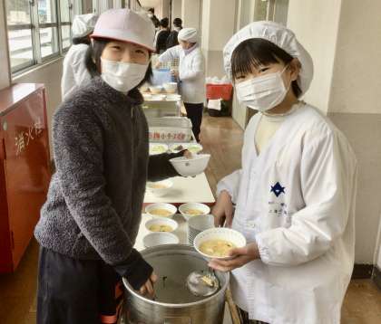 2月12日(水)の梅坪小(7)4年生の給食風景