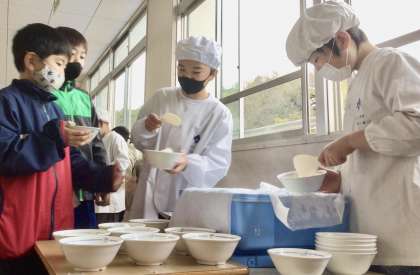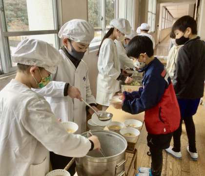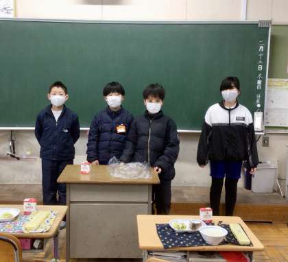 2月12日(水)の梅坪小(8)4年生の給食風景