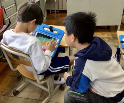 2月12日(水)の梅坪小(15)1年生 タブレット学習