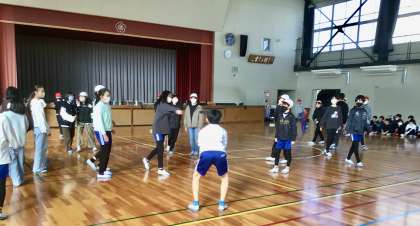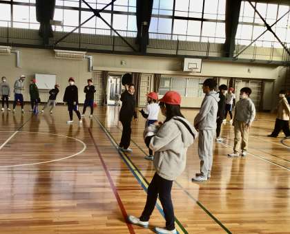 2月17日(月)の梅坪小(21)6年生 学年レク フリスビードッジ