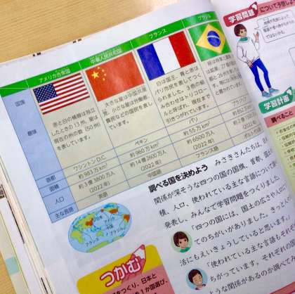 国旗の意味、面積、首都、人口、使われている言語、気候、衣食住……など、国の特徴と日本とのつながり。