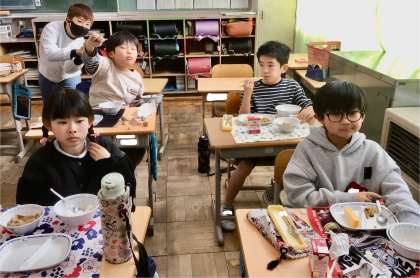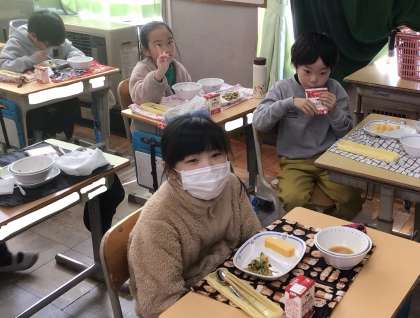 2月19日(水)の梅坪小(12)3年生の給食風景