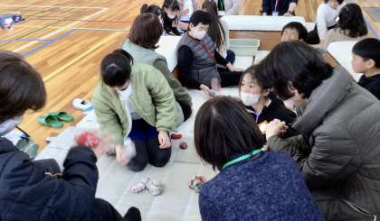 2月19日(水)の梅坪小(15)4年生 福祉の学習 お年寄りの方々との交流会