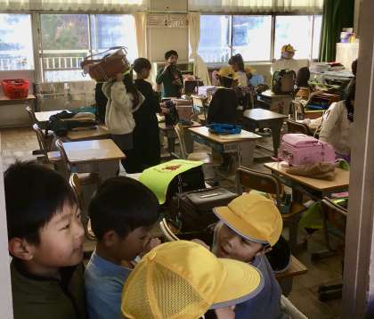 2月20日(木)の梅坪小(3)今朝の1年生