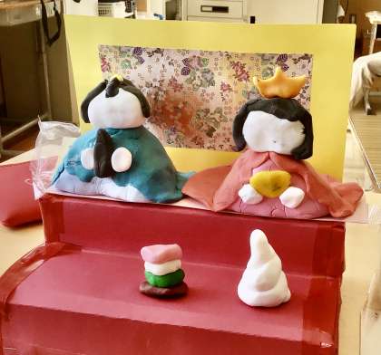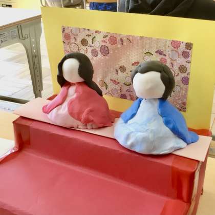 2月25日(火)の梅坪小(5)7、8、9、10、11組 図工 おひなさまづくり