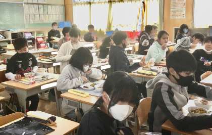 2月25日(火)の梅坪小(8)6年生の給食風景