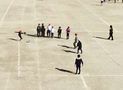 2月25日(火)の梅坪小(12)3年生 体育 キックベースボール