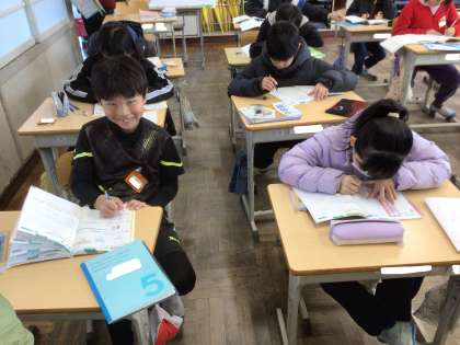 今日は、少人数制の授業ではありませんでしたが、子どもたちは、自分たちでも教え合いながら定着を図っていました!!