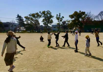 2月27日(木)の梅坪小(6)暖かな休み時間! 白熱ドッジボール