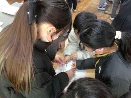 タブレットから映し出された3ヒントで、作るものをあてていきました。