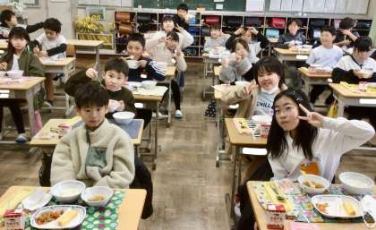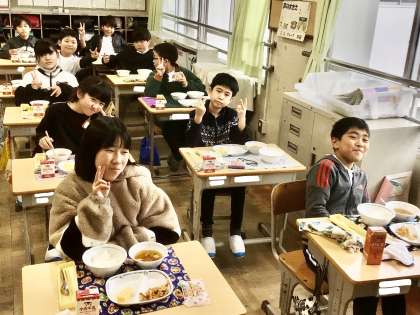 3月3日(月)の梅坪小(11)4年生の給食風景