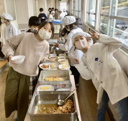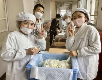3月3日(月)の梅坪小(10)4年生の給食風景