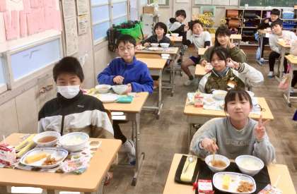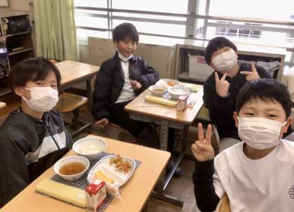 3月3日(月)の梅坪小(12)4年生の給食風景
