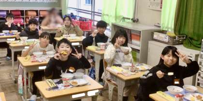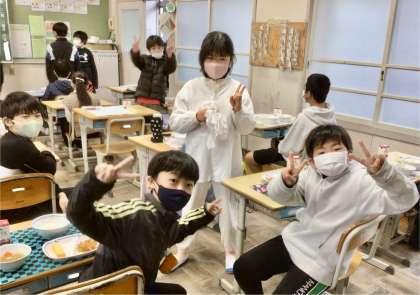 3月3日(月)の梅坪小(15)4年生の給食風景