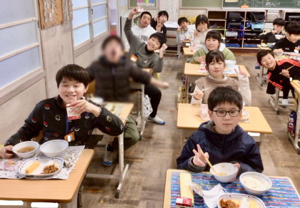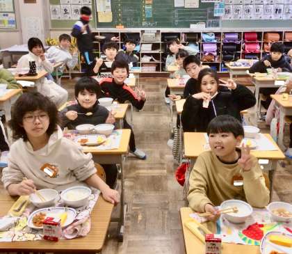 3月3日(月)の梅坪小(16)4年生の給食風景