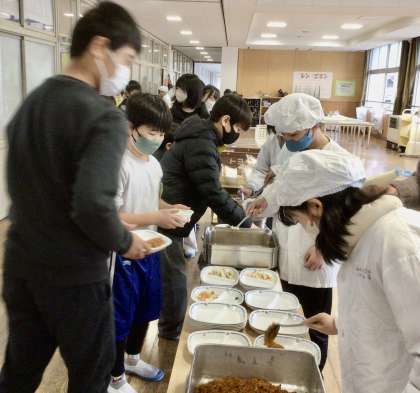 3月4日(火)の梅坪小(8)5年生の給食風景