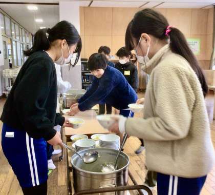 3月4日(火)の梅坪小(9)5年生の給食風景