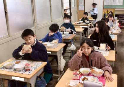 3月4日(火)の梅坪小(11)5年生の給食風景