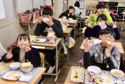 3月4日(火)の梅坪小(13)5年生の給食風景