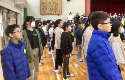 3月5日(水)の梅坪小(3)高学年 朝の合唱練習
