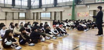 2時間目後の長い休み時間に、明日の「ありがとうの会」に向けて、代表の子どもたちがリハーサルを行いました。