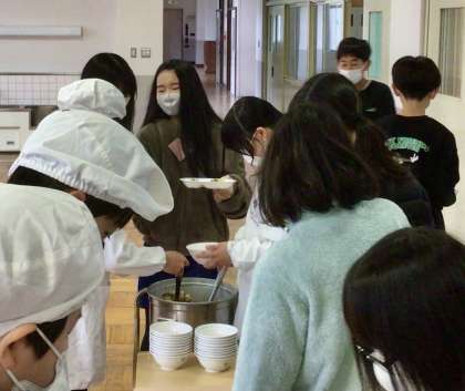 3月5日(水)の梅坪小(9)6年生の給食風景