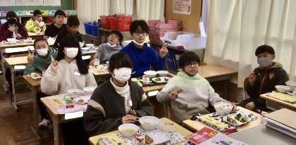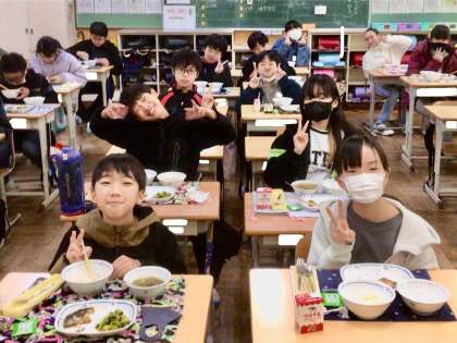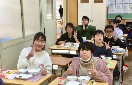 3月5日(水)の梅坪小(11)6年生の給食風景