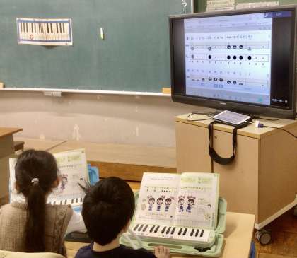 デジタル教科書の視覚活用や、階名が書かれたイラストの掲示が 子どもたちの学ぶ意欲を活性化させていました!^ - ^