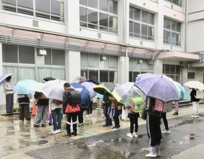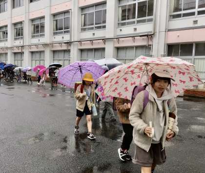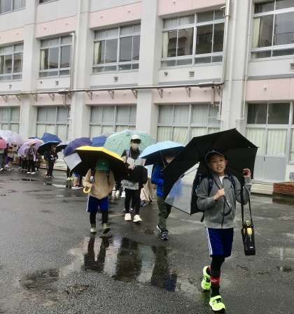 3月5日(水)の梅坪小(16)小雨の中の下校