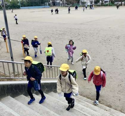 4時間授業、給食、清掃後の一斉下校です。