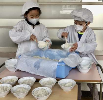 3月6日(木)の梅坪小(6)やったー、カレーだ!