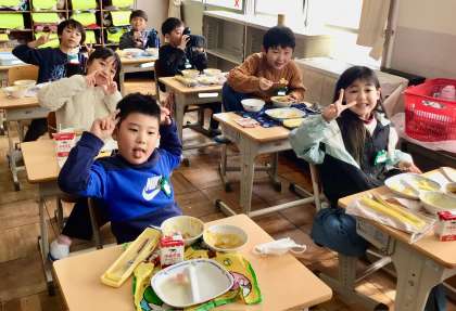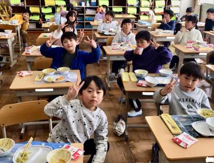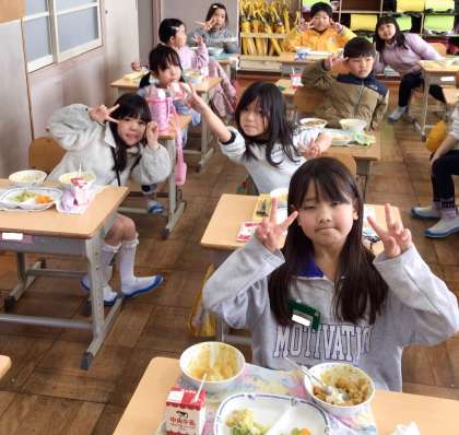 3月6日(木)の梅坪小(13)1年生の給食風景