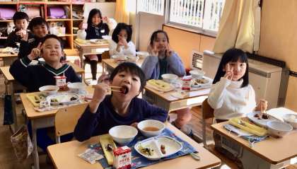 3月7日(金)の梅坪小(13)2年生の給食風景
