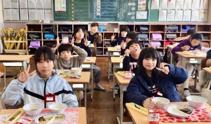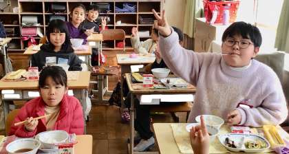 3月10日(月)の梅坪小(10)3年生の給食風景