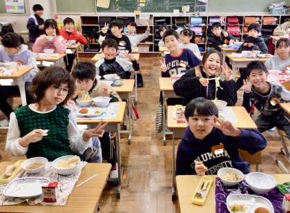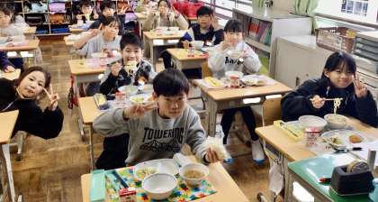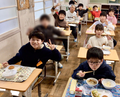 3月11日(火)の梅坪小(9)4年生の給食風景