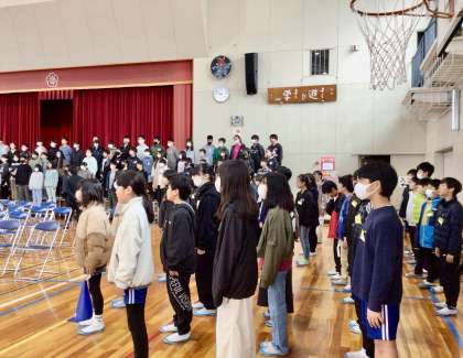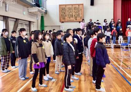 3月12日(水)の梅坪小(3)5、6年生 朝の合唱練習