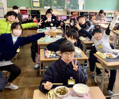 3月12日(水)の梅坪小(13)5年生の給食風景