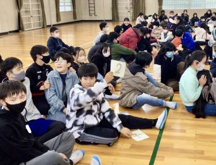 3月12日(水)の梅坪小(22)6年生 学年レク 公開日 2025/03/12 更新日 2025/03/12 各学年から 卒業式までカウントダウンに入った6年生の皆さん。 本日の学年レクの様子です。 運営委員会の皆さんが進行役兼出題を担い、みんなで楽しめるクイズ大会でした♪ 寸劇後、さて、先生にあいさつをしなかったのは誰でしょう?