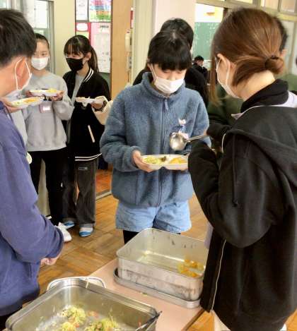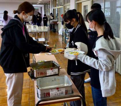 3月13日(木)の梅坪小(11)6年生の給食風景 公開日 2025/03/13 更新日 2025/03/13 各学年から ミックスフルーツ、ポークビーンズ、コールスローサラダ、増量希望者多数でした!^^