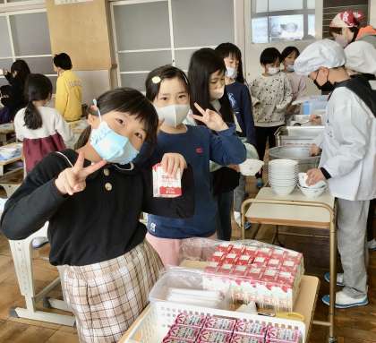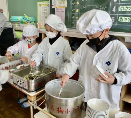 3月14日(金)の梅坪小(9)1年生の給食風景