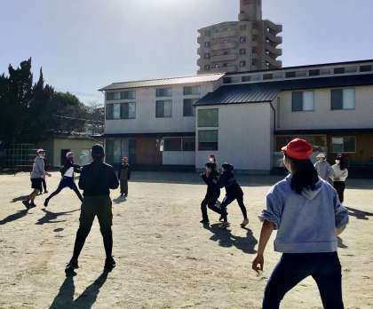 春の日差しをめいっぱい浴びて、このメンバーで行うドッジボールを楽しんでいました!