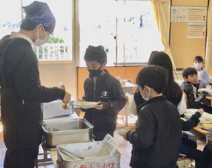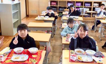3月14日(金)の梅坪小(10)2年生の給食風景
