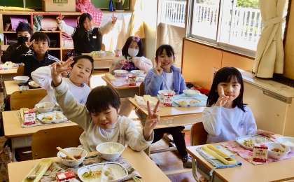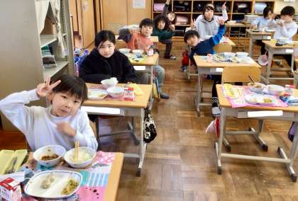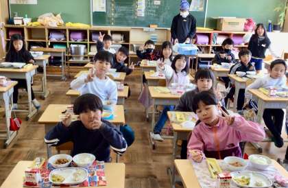 3月14日(金)の梅坪小(11)2年生の給食風景