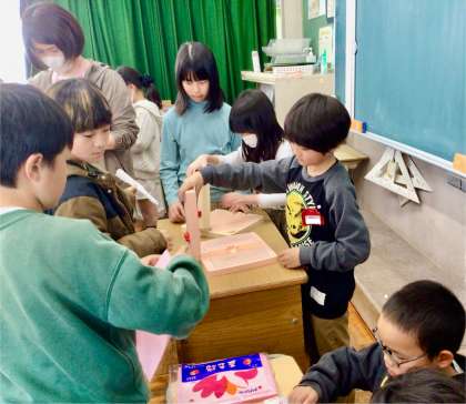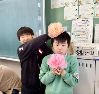 卒業式が迫るなか、お花紙でお花を急ピッチで作っていました。