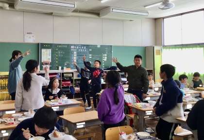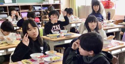 3月18日(火)の梅坪小(7)3年生の給食風景