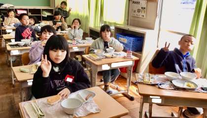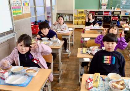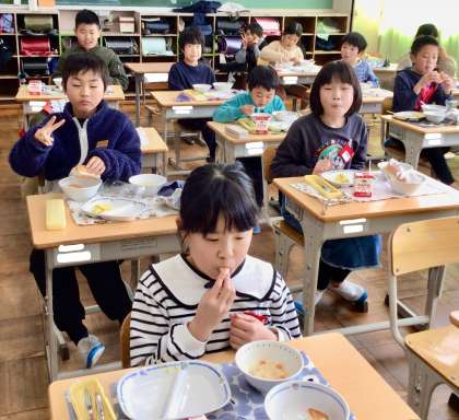 3月18日(火)の梅坪小(9)3年生の給食風景
