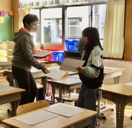 豊田市長さん、豊田市教育委員会からのメッセージカード、記念品の時計?を、一人一人の机の上に丁寧において行く作業もありました。