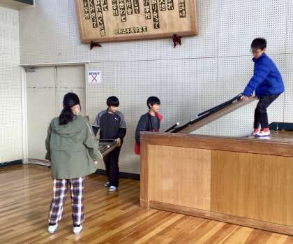 3月21日(金)の梅坪小(3)体育館の片付け 5年生