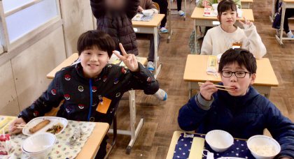 3月21日(金)の梅坪小(7)4年生の給食風景