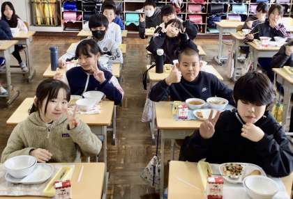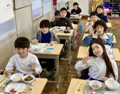 3月21日(金)の梅坪小(10)4年生の給食風景